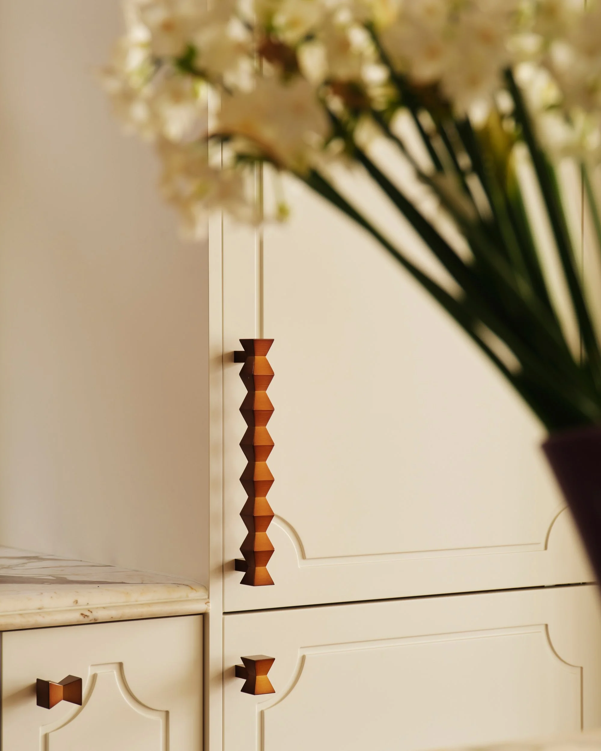 Jewellery for your home. That's how we think about handles. Especially the ones we designed in collaboration with Lo & Co, which elevate daily touchpoints into moments of considered luxury. Influenced by Art Deco geometry, our collection features bold, bow-like silhouettes crafted from bronze, marble, brass and nickel. Smac Studio’s founder, Shona McElroy, installed them everywhere in her new apartment, from the kitchen to the bedrooms. Shop our entire “Forma” collection at the link below.