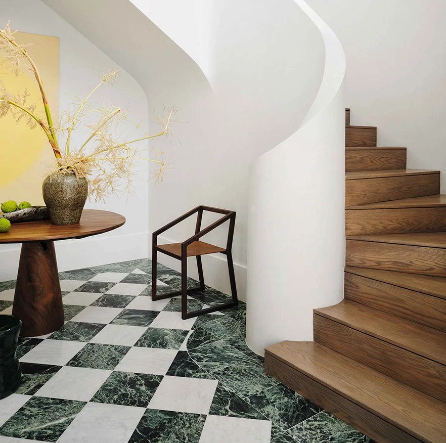 An Otherworldly Powder Room Is Tucked Under This Sydney Home’s Curved Stairs, Domino
